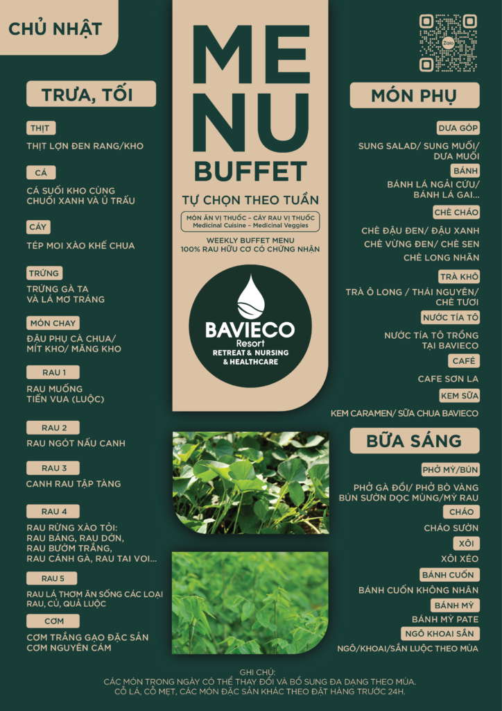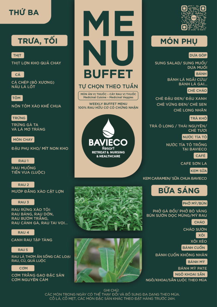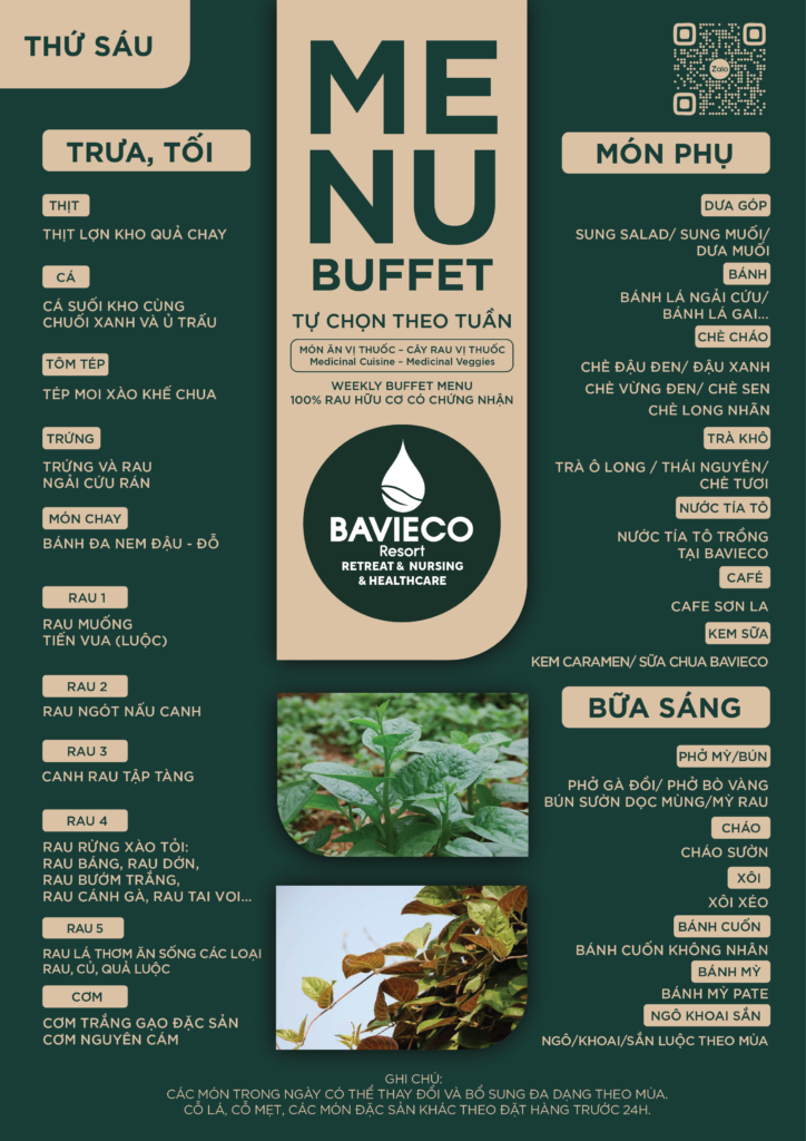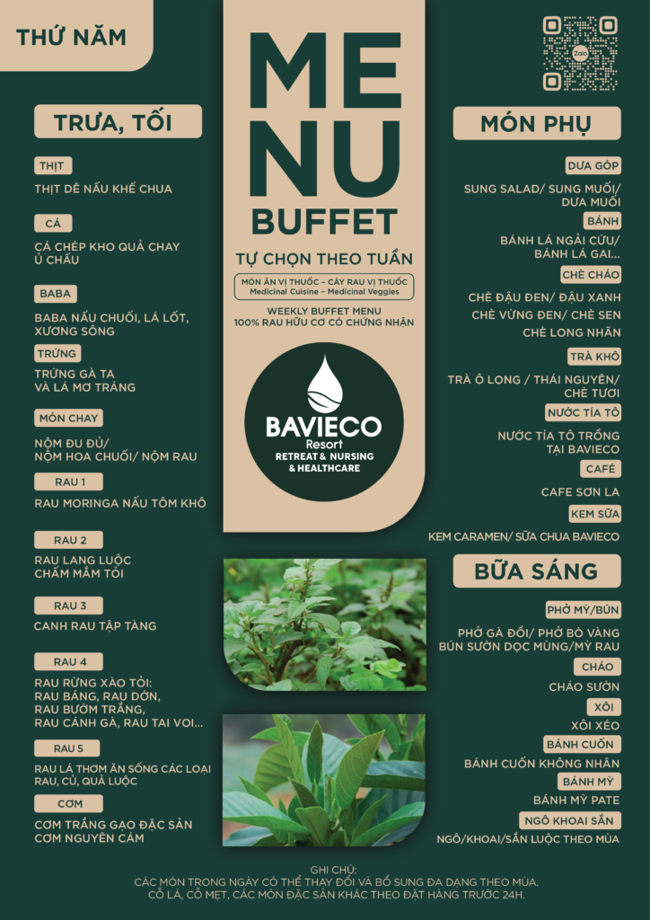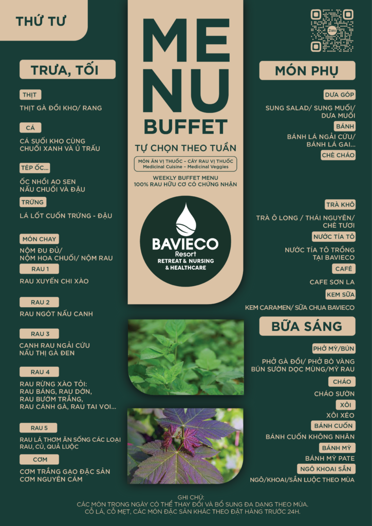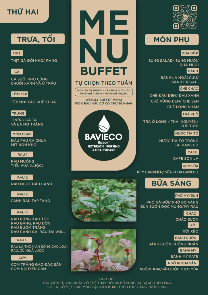Cùng theo dõi bảng thực đơn hàng ngày với các món ăn vị thuốc và cây rau vị thuốc của Bavieco: