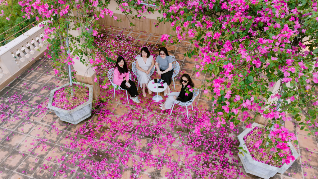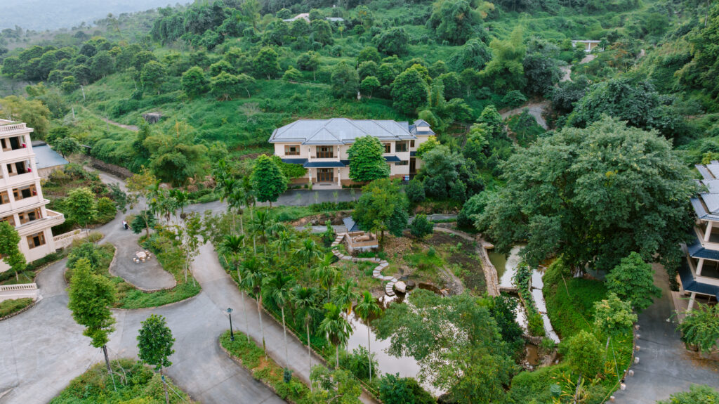 Private villas such as Mộc House, Tuệ Tĩnh House, Lotus House, etc.; the hill has thousands of flowering/ornamental trees, including fragrant orange jasmine flowers blooming year-round.